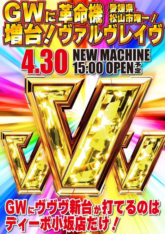 4月30日GW新台入替!ヴヴヴ増台!本日もディーボ小坂へ!