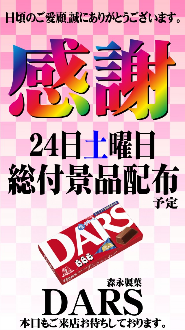 感謝!本日総付景品配布予定!是非ご来店下さい!