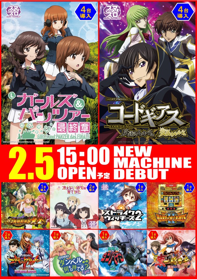 2月5日新台入替!ギアスにガルパンなど話題のスマスロが登場!