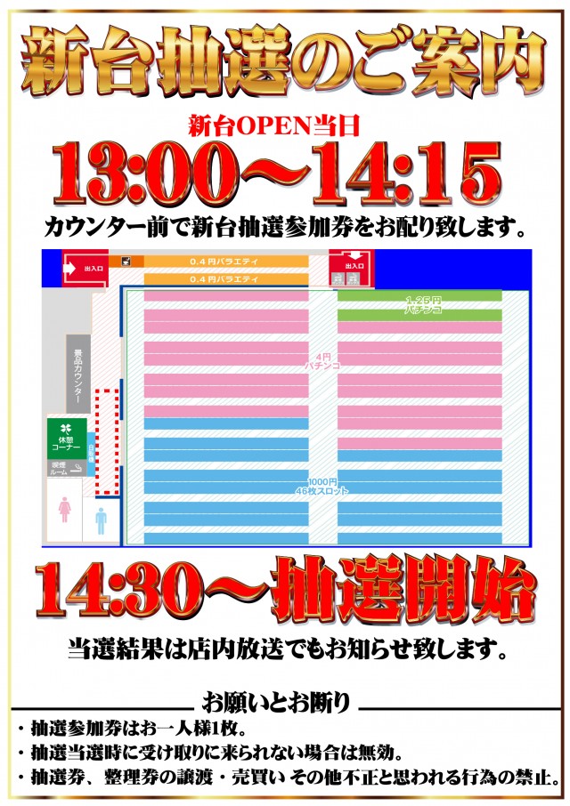 🌈スロット増台!13時~新台抽選参加券配布予定です!🌈