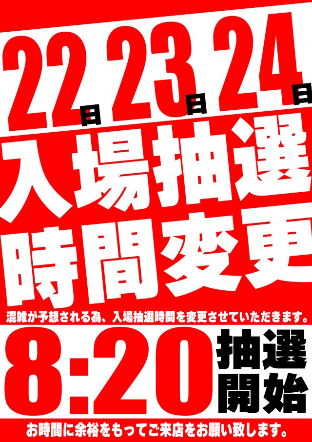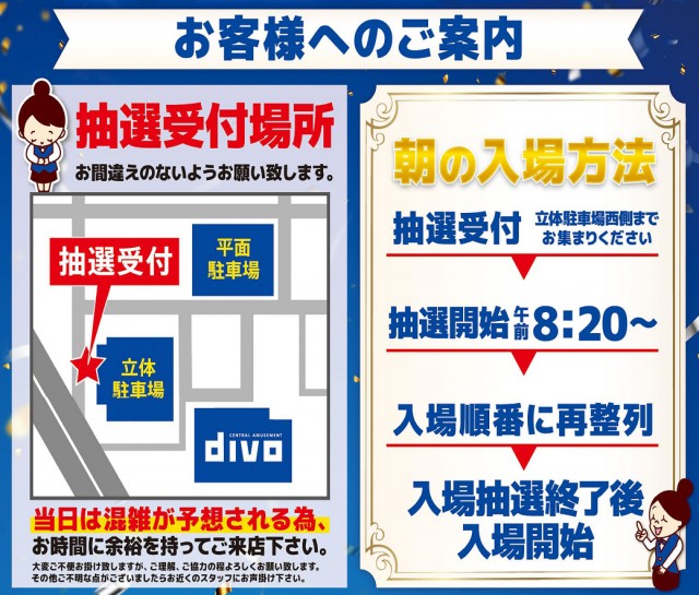 8:00~8:35入場抽選受付 8:40結果発表 8:45整列 |