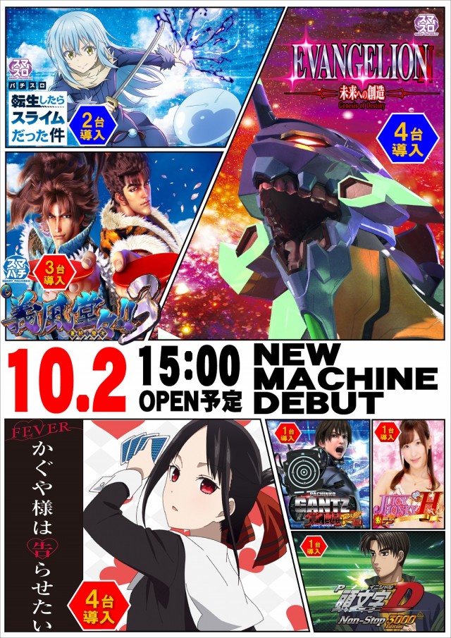 10/2 新台入替!この後13:00~新台抽選券配布予定!
