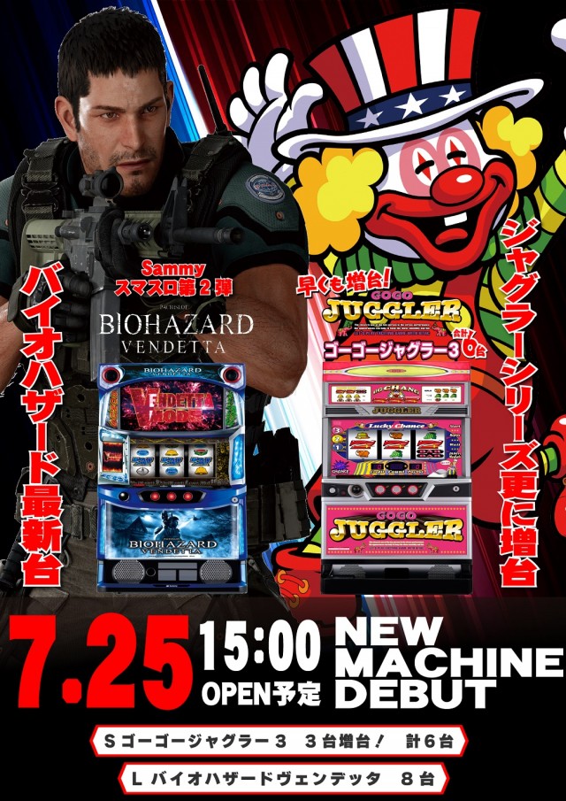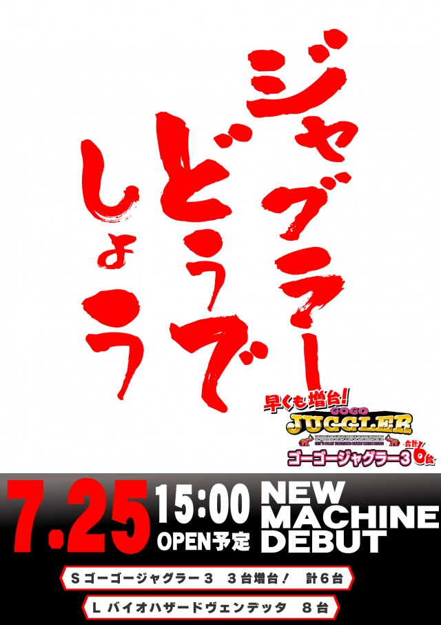 7/25 新台入替!このあと13時~新台抽選参加券配布予定!