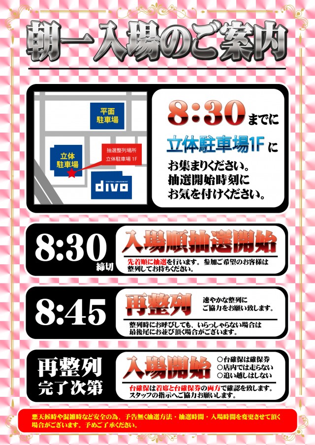 🌈月初めもディーボへ!朝一入場抽選は8:30~です。🌈