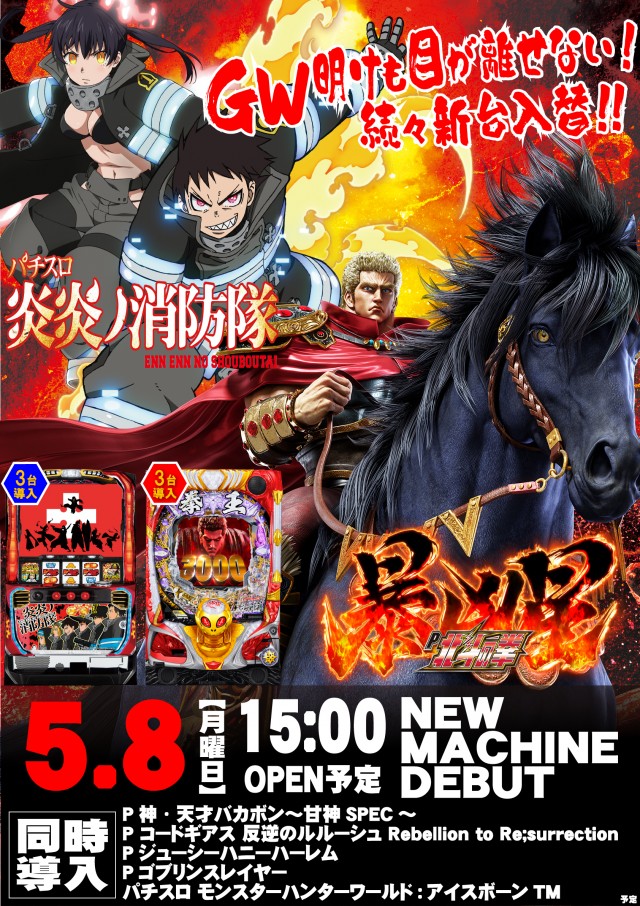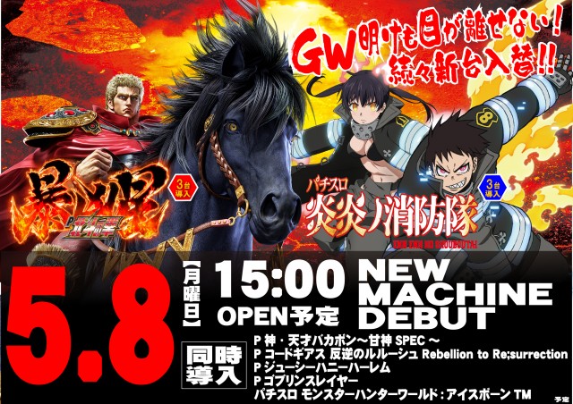 5/8新台入替!本日もご来店お待ちしてます。入場抽選8:30