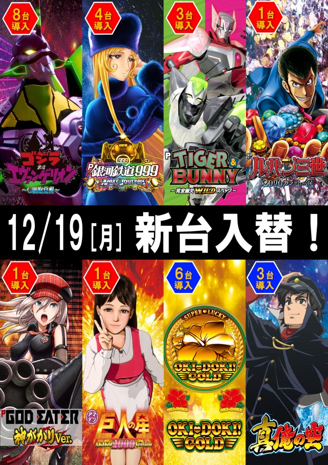🍀12月19日新台入替!本日もご来店をお待ちしております!🍀