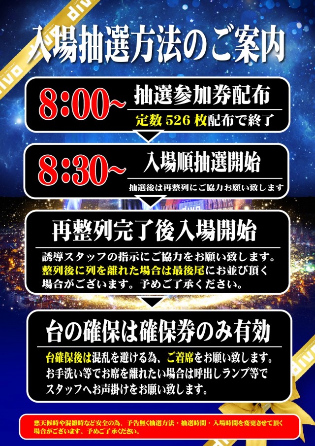 🌈本日もご来店をお待ちしております!入場抽選8:30です。🌈
