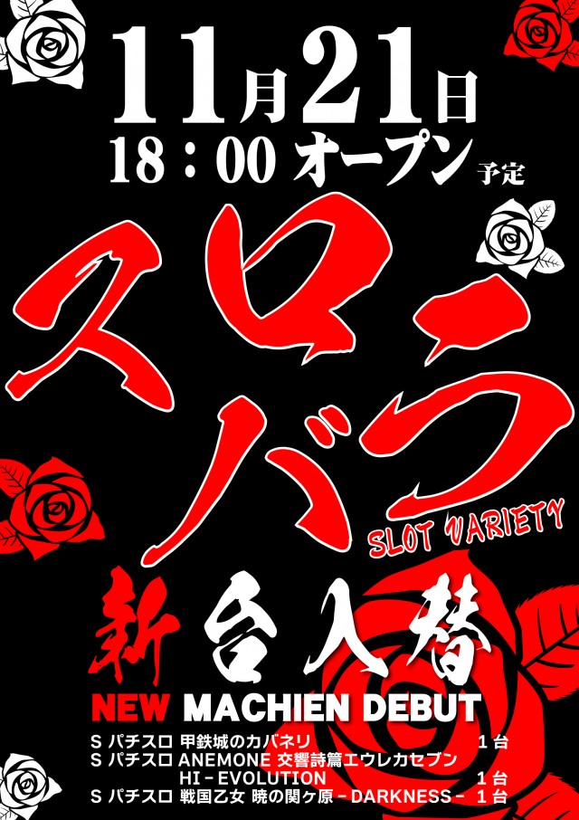 🍀11月21日スロバラ新台入替!新台抽選参加券を配布中!🍀