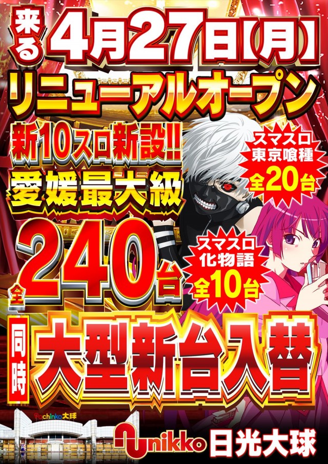 来る4月27日(月)リニューアルオープン!新10スロ新設!!