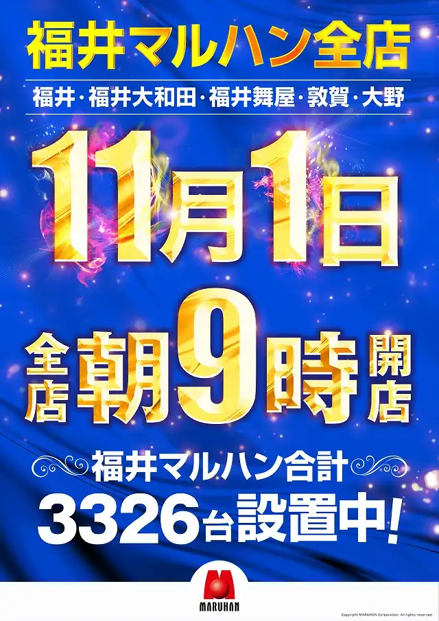 福井市マルハン合同新台入替:1月23日【月】あさ9時開店!!