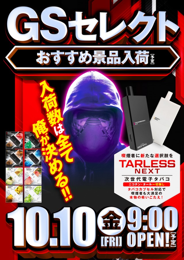 ☆10月8日(水) ☆スロパチ賞品入荷" 入場抽選8:30~