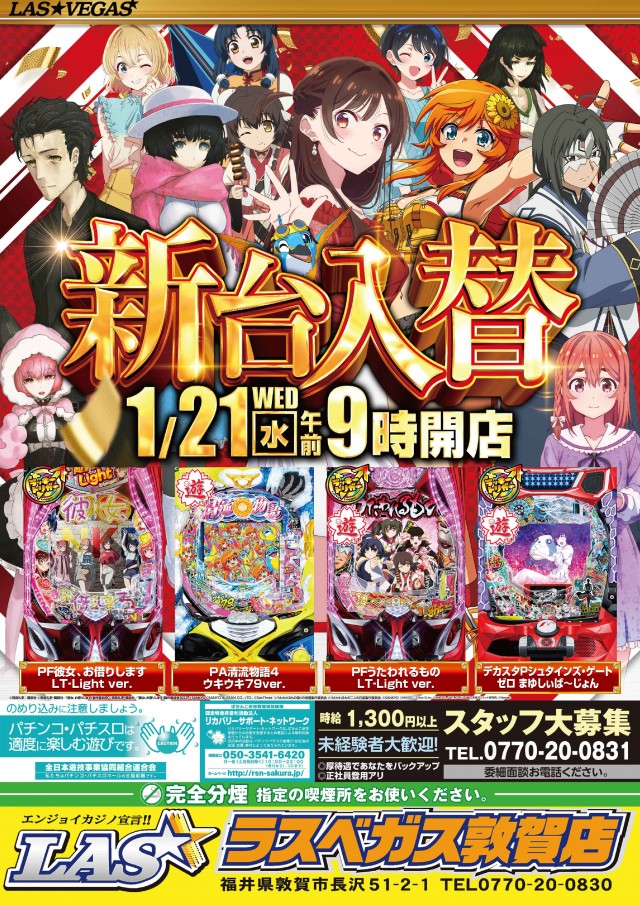 本日1月21日【水】◇新台入替◇午前9時開店v( ̄ー ̄)