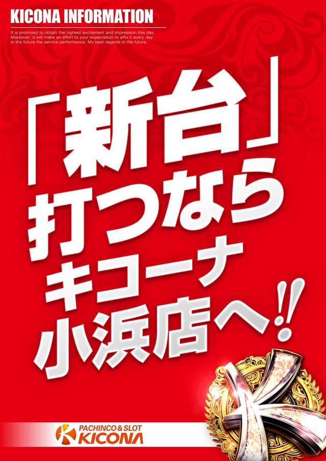 明日5日新台打つなら地域最大級480台のキコーナ小浜店へ!