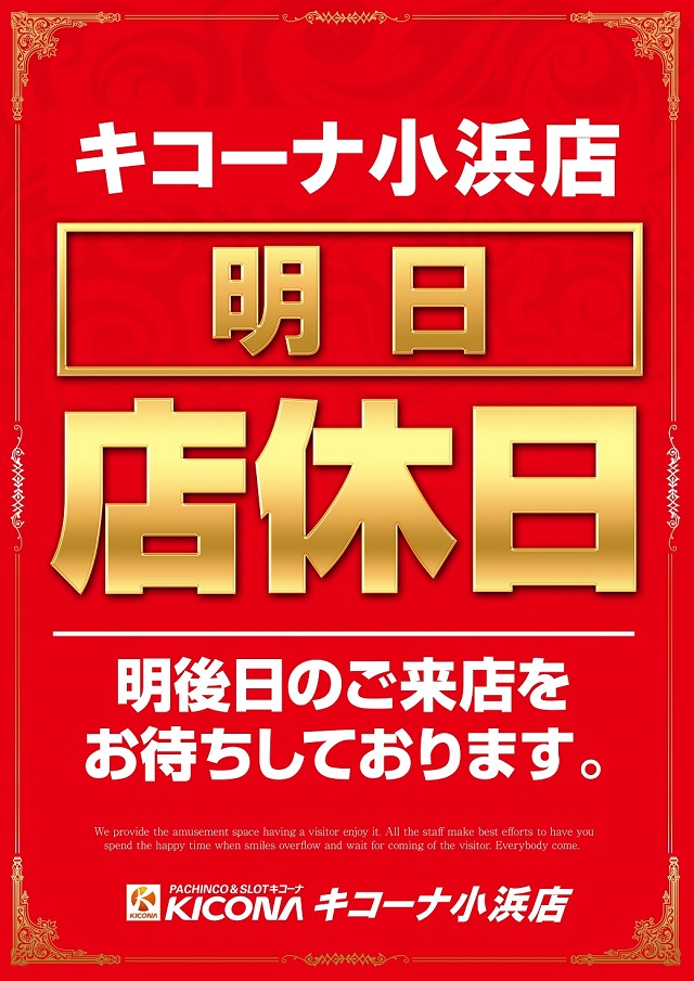 明日12日キコーナ小浜店新台入替後初の週末到来!
