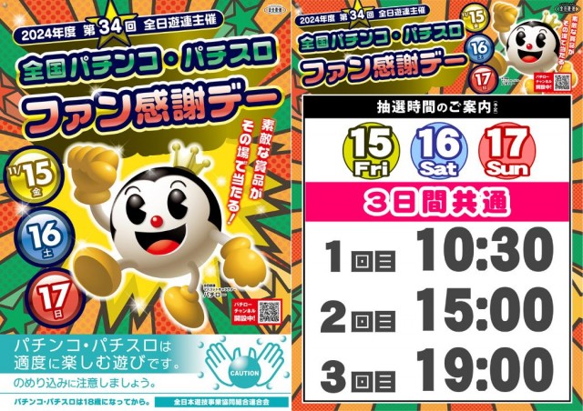 明日から3日間ファン感謝デー開催~抽選時間は連日3回!!