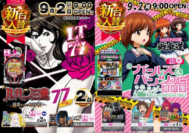明日9/2(月)LT搭載ルパン等7機種導入予定
