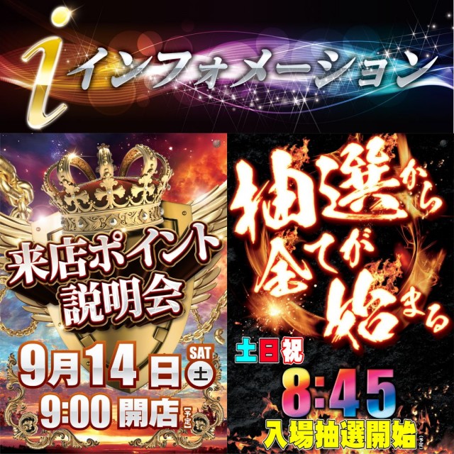 9/14(土)来店ポイント説明会~入場抽選8:45から!