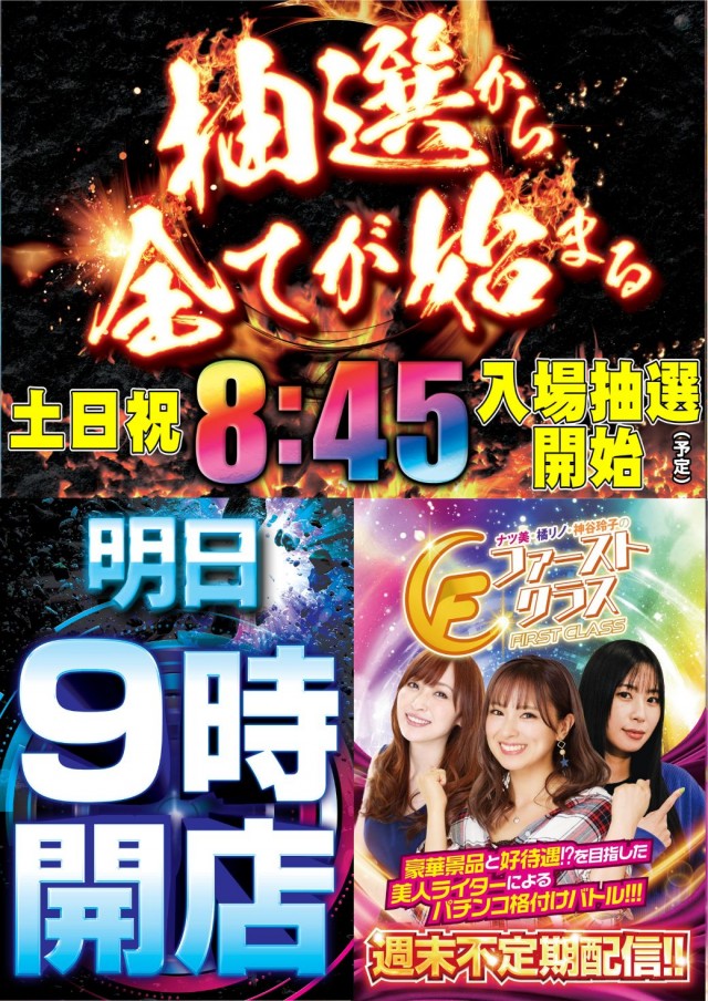 ファーストクラスYouTubeで週末不定期配信~明日9時開店