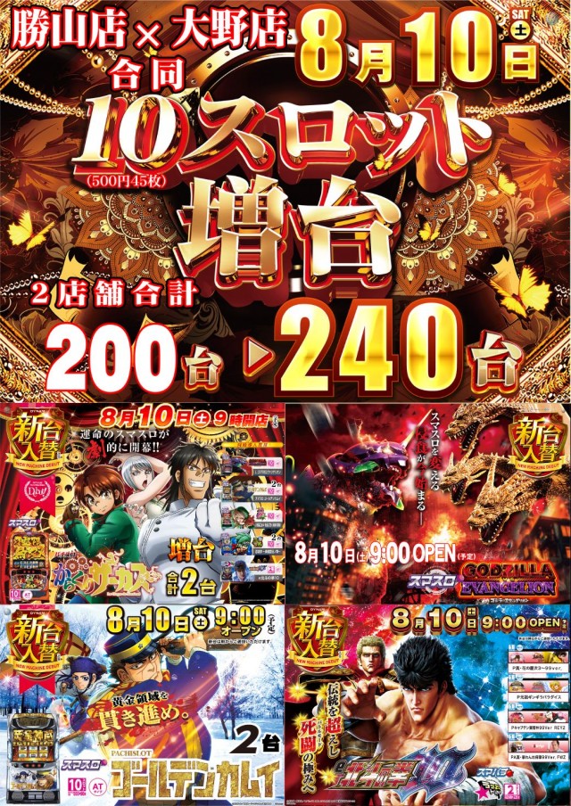 8/10(土)勝山店×大野店合同10スロ増台~合計240台に