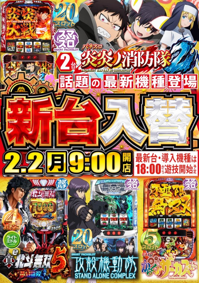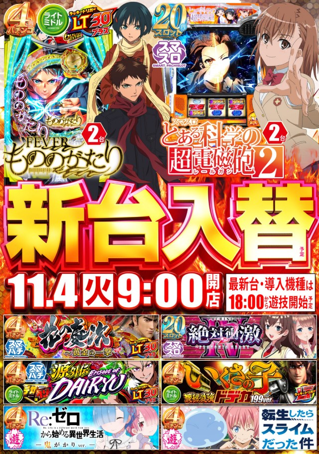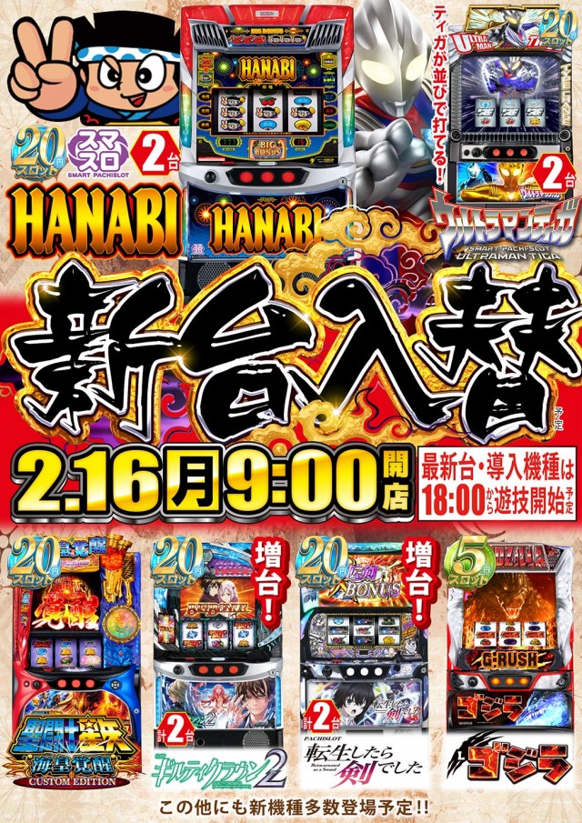 ☆本日☆新台入替(予定)☆9時スタート☆最新台は18時開放!
