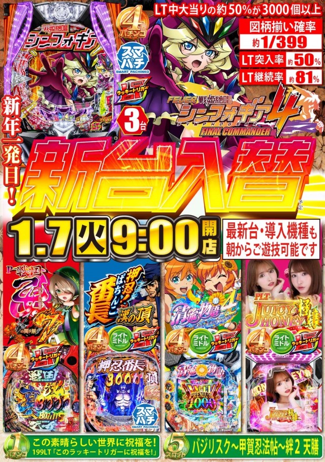 ☆本日☆新台入替(予定)☆9時スタート☆最新台は18時開放!