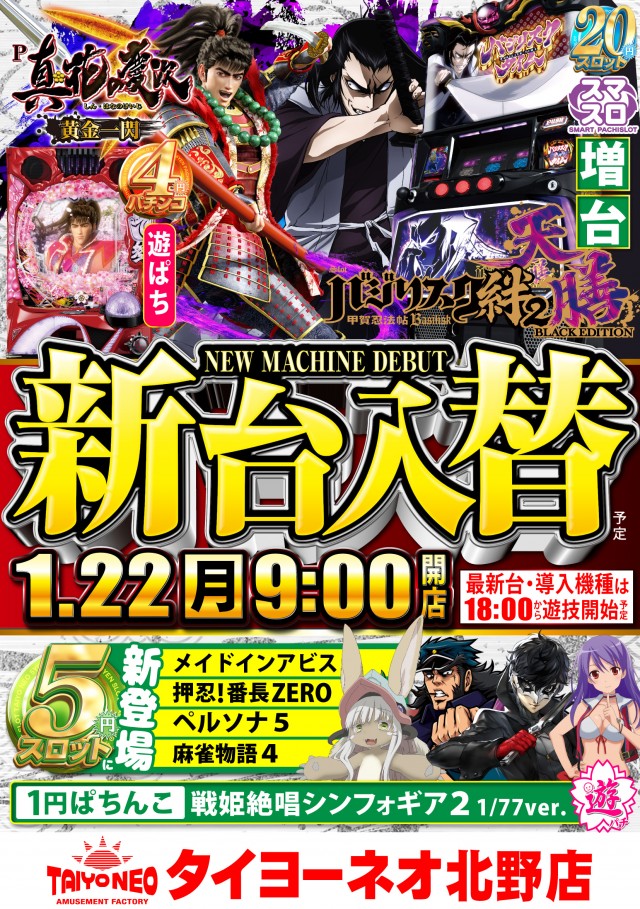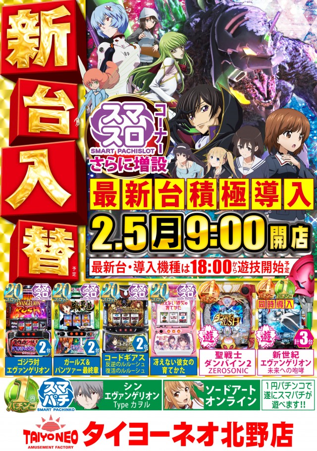 ☆本日☆新台入替(予定)☆9時スタート☆最新台は18時開放!