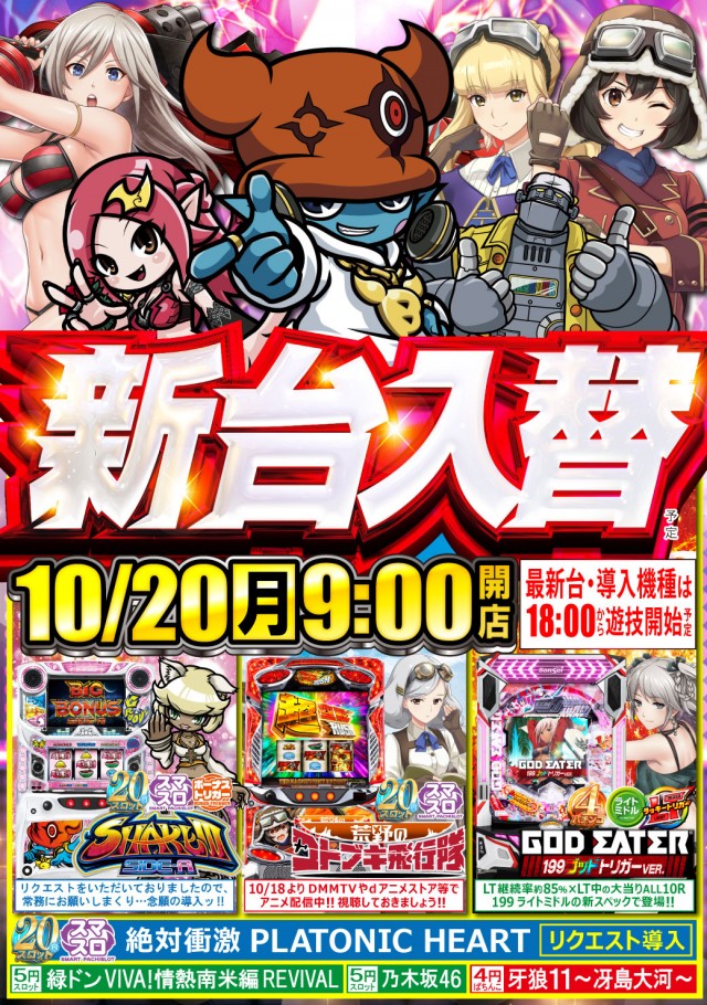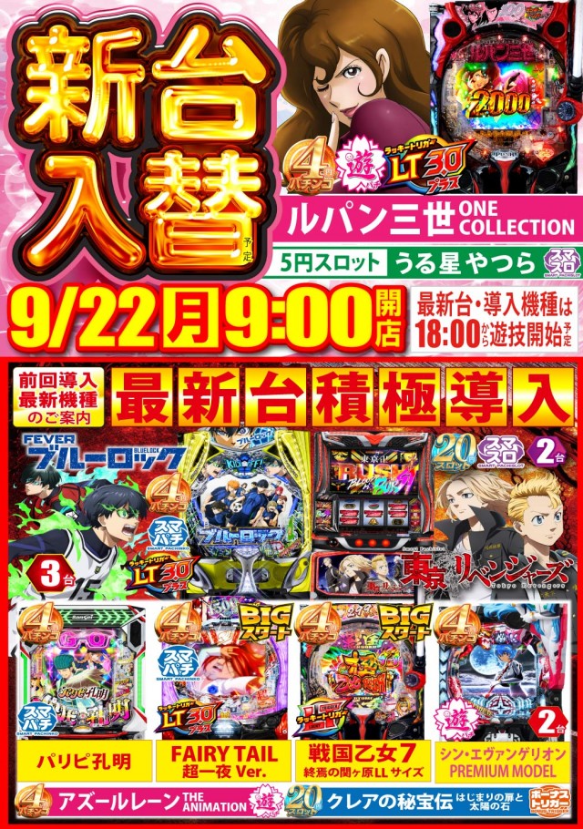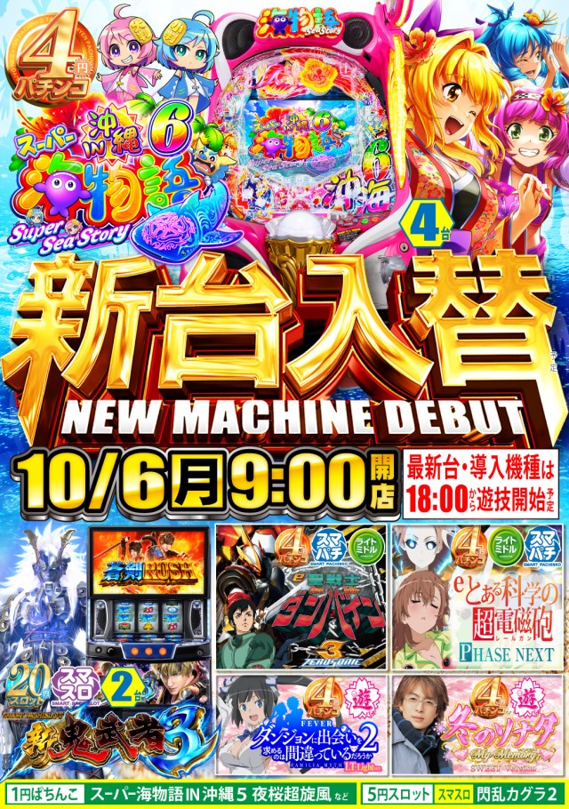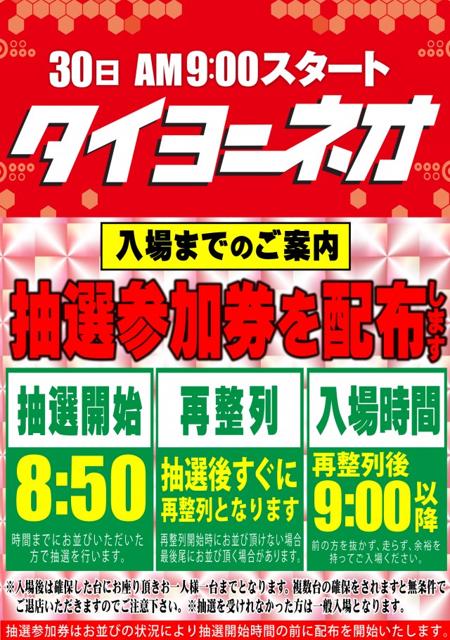 ☆本日☆新台入替(予定)☆9時スタート☆最新台は18時開放!