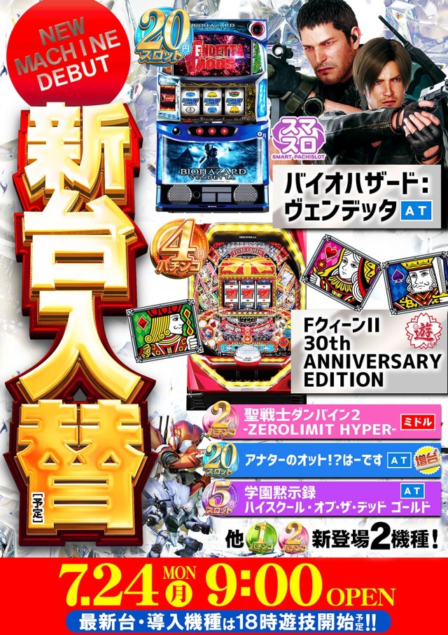 ☆本日☆新台入替(予定)☆9時スタート☆最新台は18時開放!