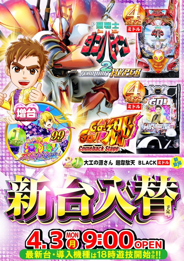 ☆本日☆新台入替(予定)☆9時スタート☆最新台は18時開放!