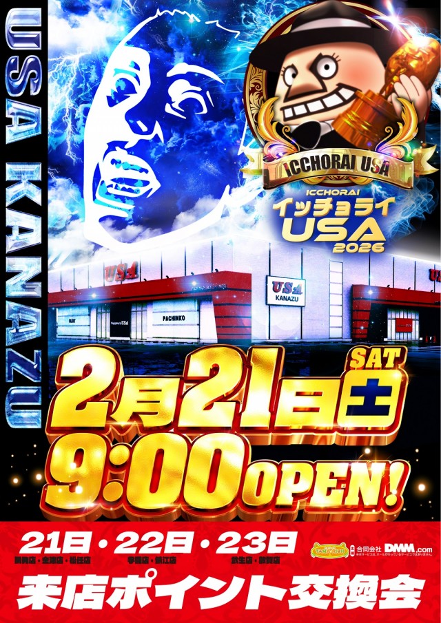 2月18日【水曜日】新台入替3日目!2月はイッチョライUSA