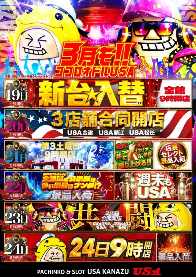 3月28日【第4土曜日】USA金津店!朝9時開店!!