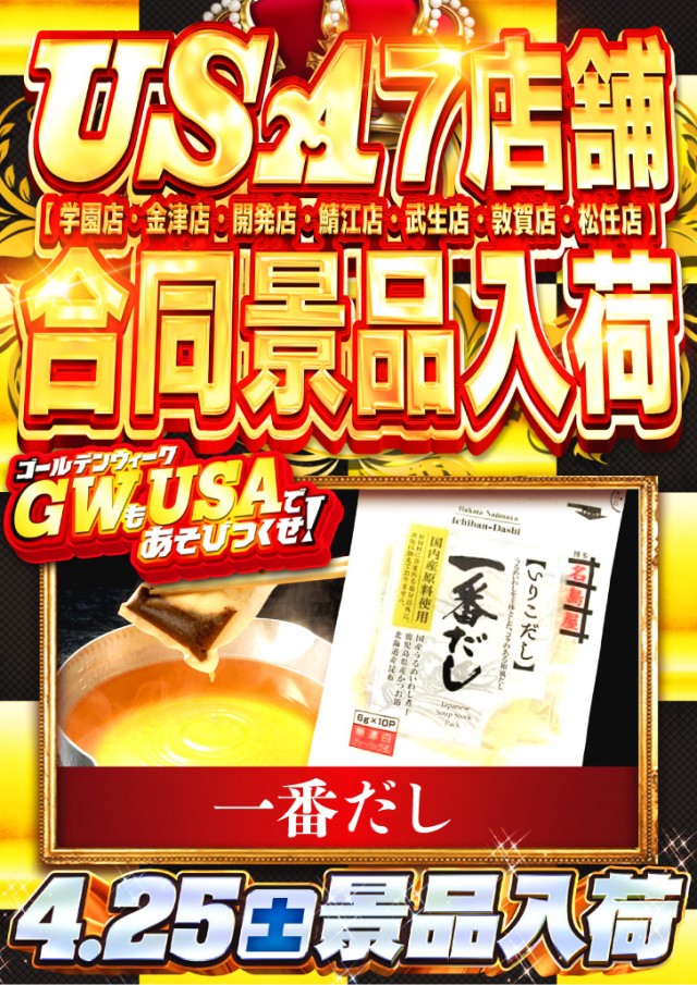 USA金津店!4月24日(金)!朝9時開店!店頭抽選入場!