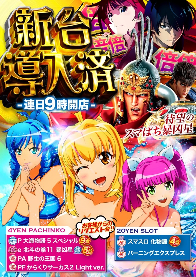12月9日【火曜日】新台導入済み!朝9時開店!