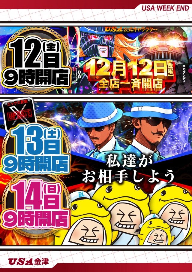 12月13日【第2土曜】福井USA6店舗一斉!朝9時開店!