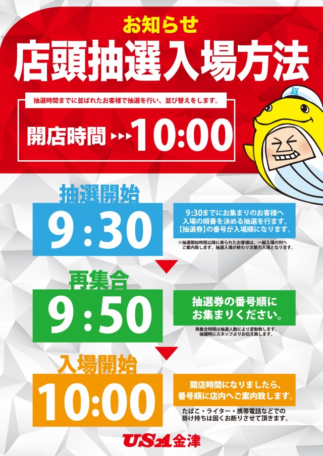 1月24日【第4土曜日】USA金津店!朝9時開店!
