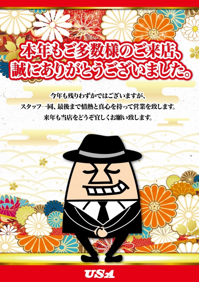 12月31日【水曜日】年末もUSA金津店!9時開店