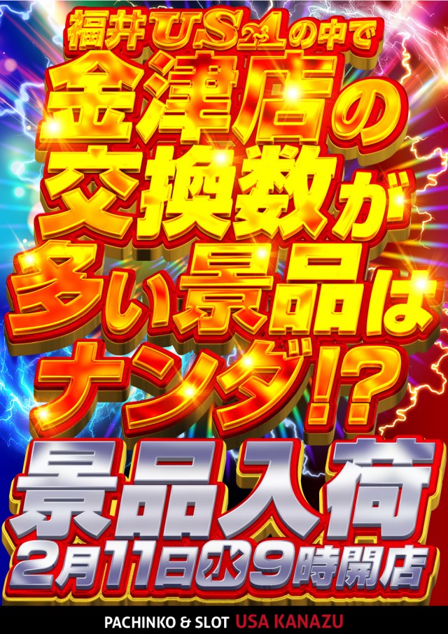 2月11日【火曜日】USA金津店!景品入荷☆朝9時開店★
