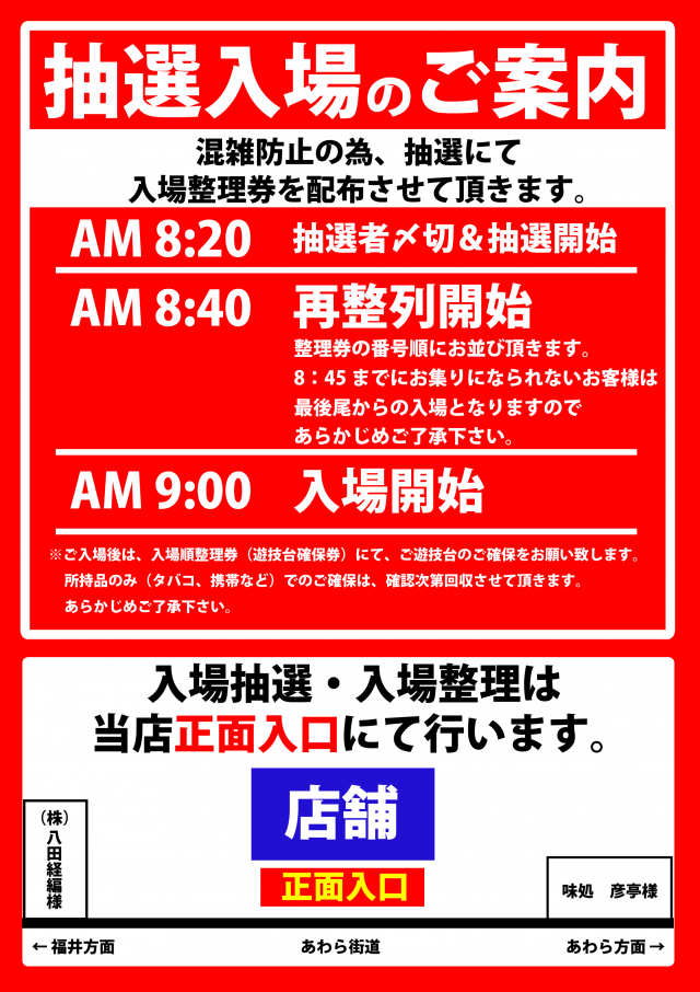 12月24日【水曜日】USA金津店!店頭抽選入場!9時開店