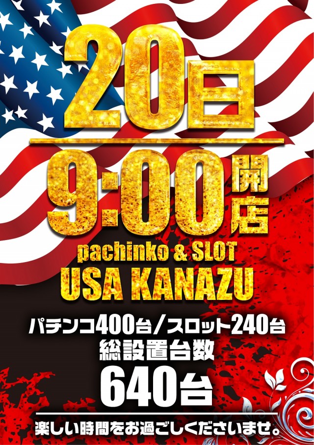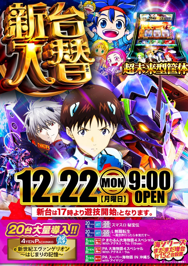 12月22日【月曜日】USA金津店!新台入替!朝9時開店!