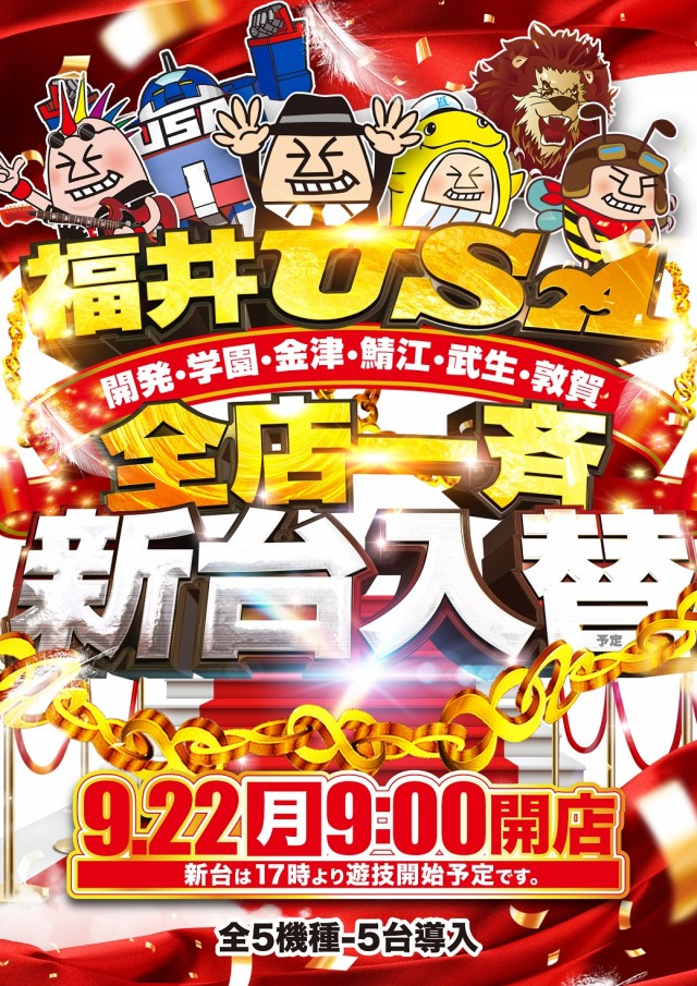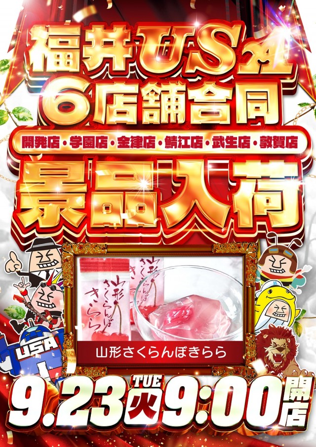 9月25日【木曜日】USA金津店!景品入荷!朝9時開店!
