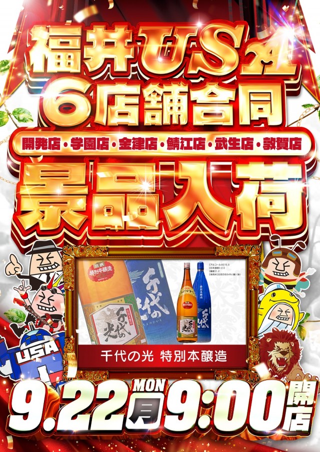 9月24日【水曜日】USA金津店!店頭抽選入場!朝9時開店!