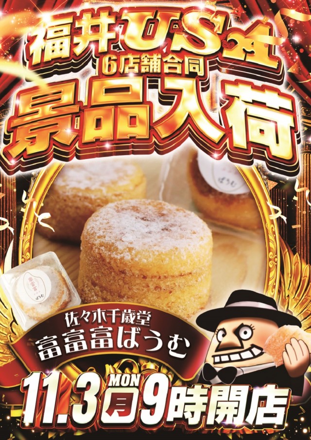 11月3日【月曜日】福井USA6店舗合同!景品入荷!9時開店