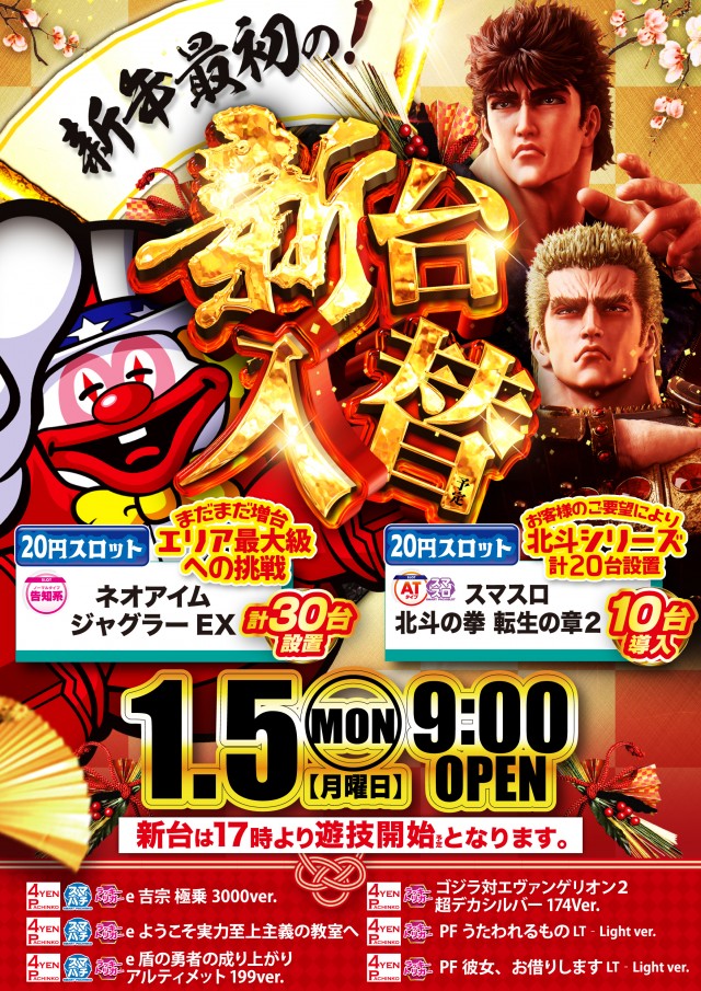 1月5日【月曜日】USA金津店!新年最初の新台入替9時開店!