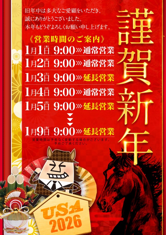 1月9日【金】USA金津!リフレッシュオープン!9時開店!
