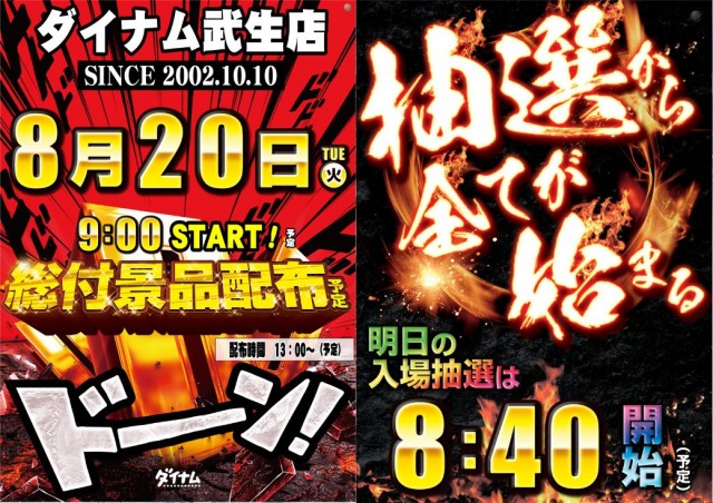 明日20日総付景品配布!9時開店予定※抽選開始8:40