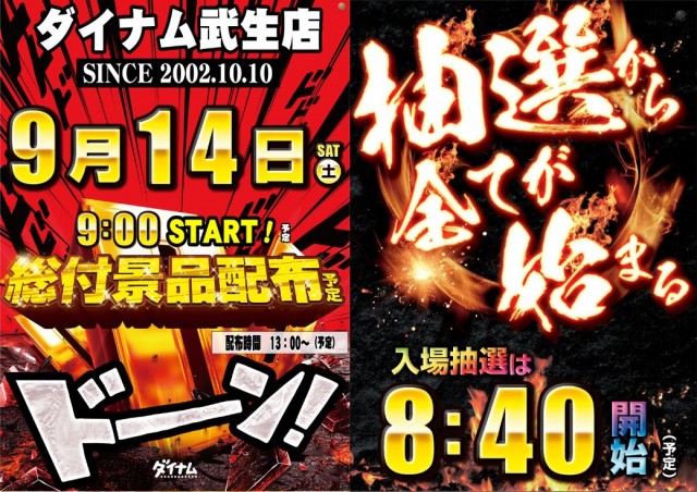明日14日総付景品配布!9時開店予定※抽選開始8:40