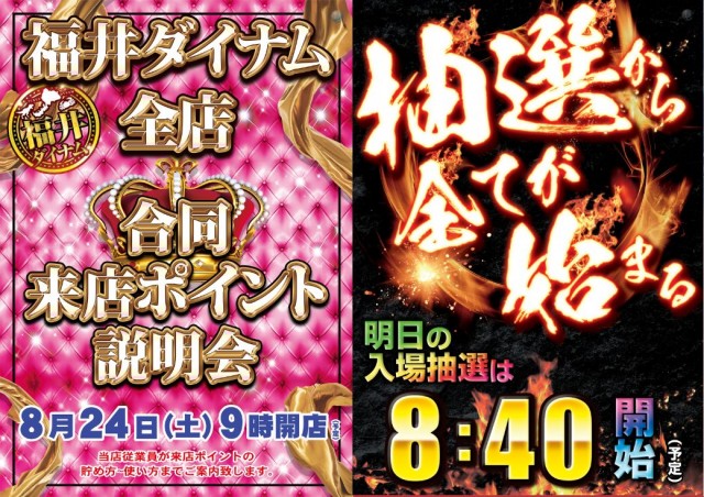 明日 福井県ダイナム合同来店ポイント説明会~抽選開始8:40