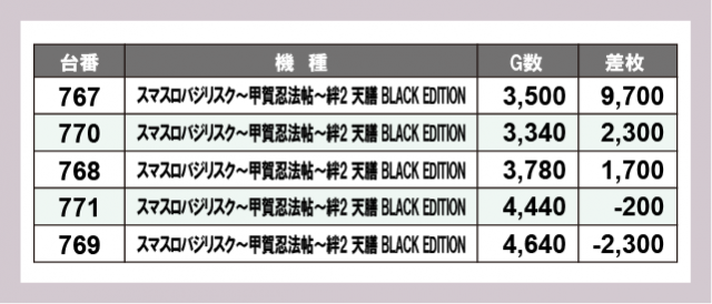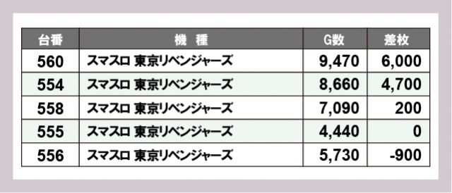 ※差枚数順に掲載しています