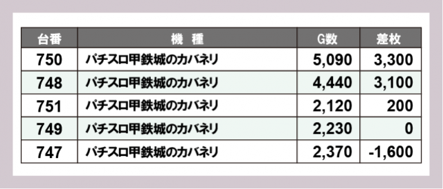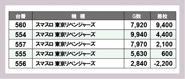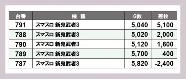 ※差枚数順に掲載しています