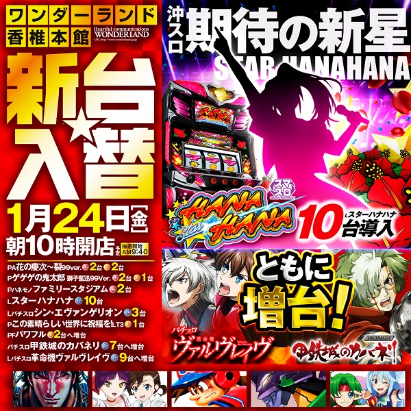 ワンダーランド香椎本館 24日 新台入替 AM10時OPEN